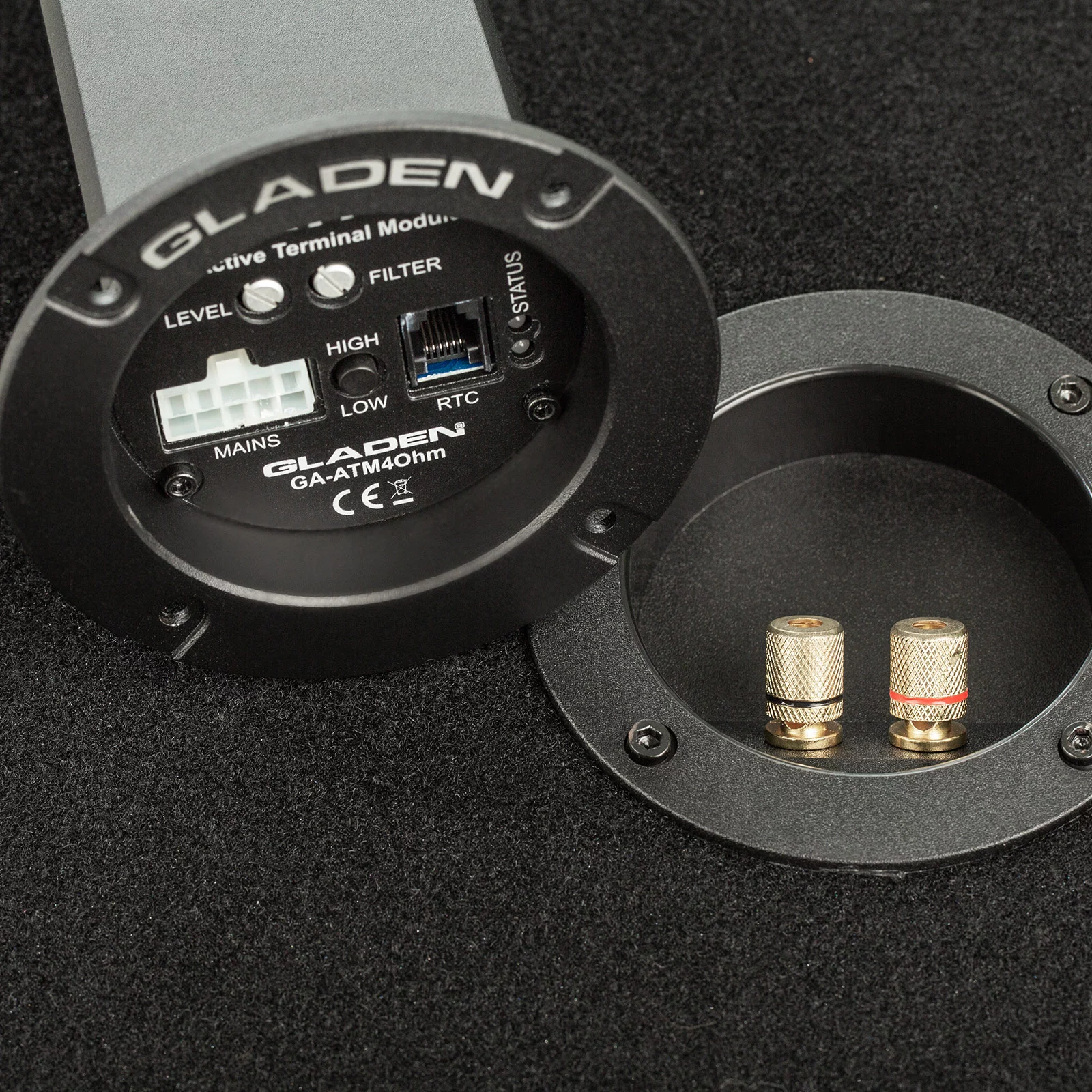 Η μονάδα Gladen ATM 2/4 μπορεί να αντικατασταθεί με έναν στρογγυλό ακροδέκτη 78 mm ενός subwoofer λόγω του στρογγυλού σχεδιασμού του.