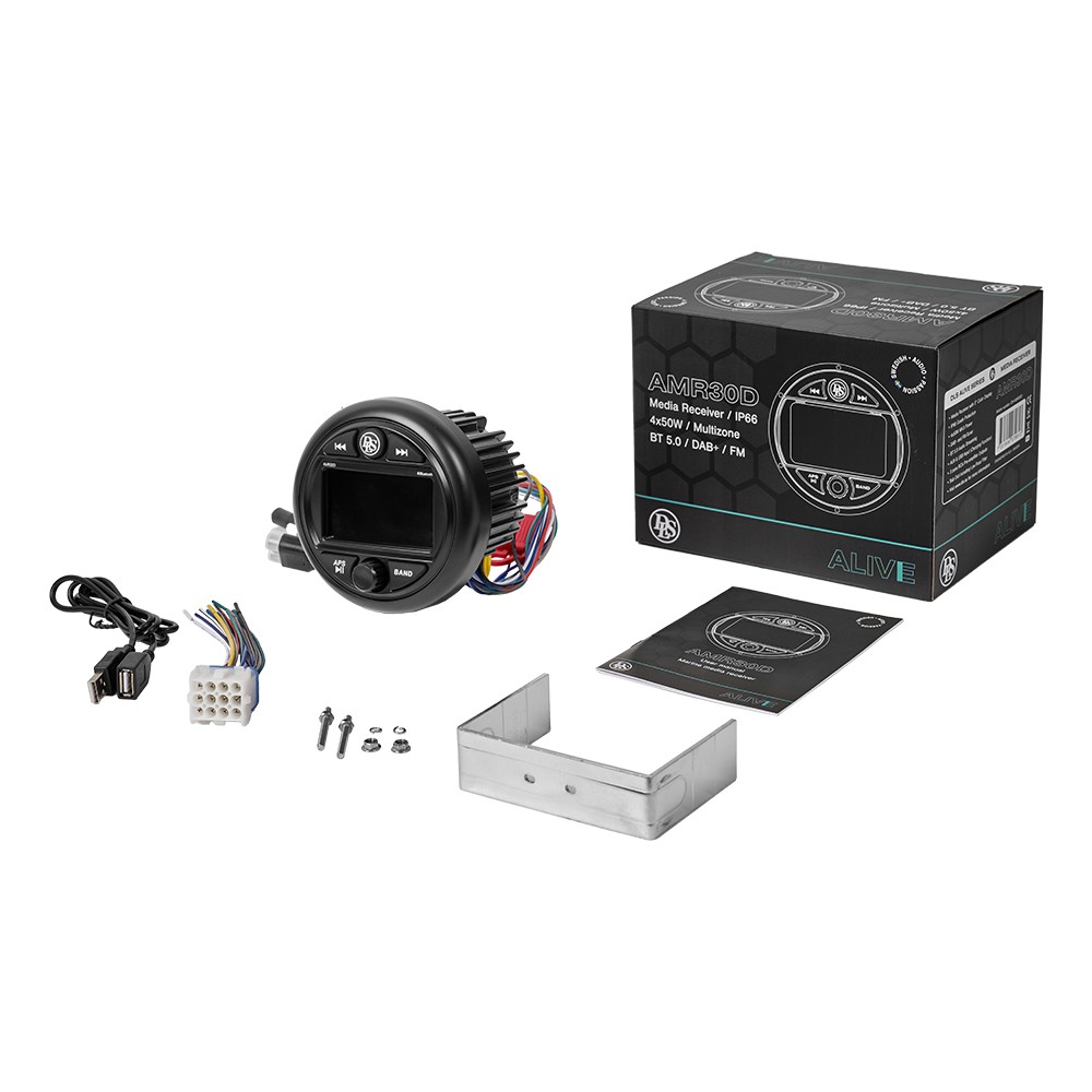Experience the ultimate in outdoor audio with the Marine Media Receiver AMR30D from the Alive series. Built for durability and superior sound, this powerful receiver features IP66 grade protection, Bluetooth 5.0 streaming, and DAB+ and FM-tuner for a wide range of listening options. Its versatile AUX and USB inputs, along with a comprehensive 10-band equalizer, ensures a high-quality and customizable audio experience – designed specifically for marine environments.