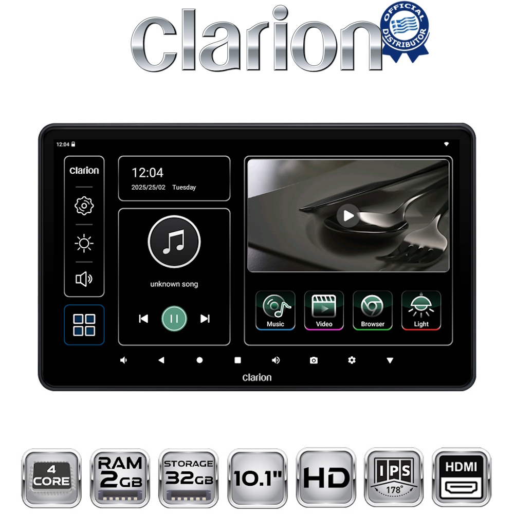 CLARION 10.1in HEADREST MONITOR 4c 2+32G – HDMI input/ output FM Modulator / BT / WiFi / USB / SD Card Slot