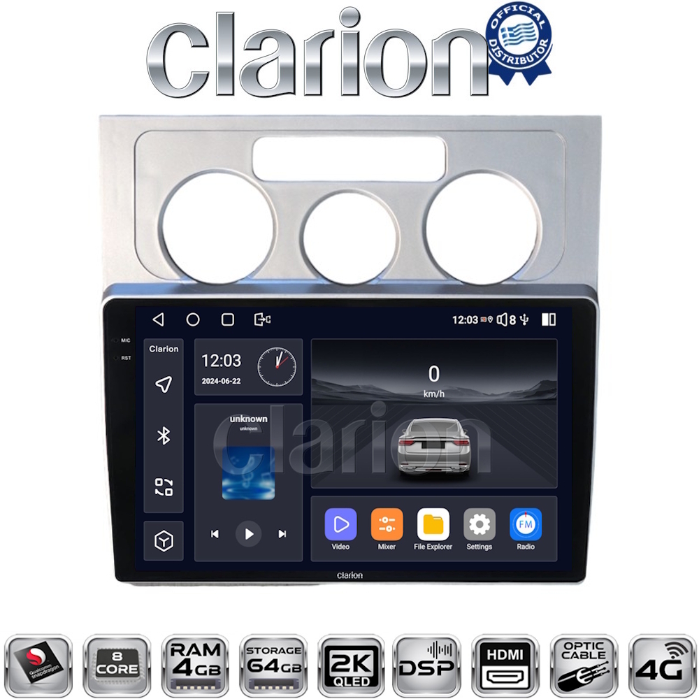 CLARION GL74512 Οθόνη OEM Multimedia Αυτοκινήτου για VW Touran 2003 > 2010 (CarPlay/AndroidAuto/BT/GPS/WIFI/GPRS)