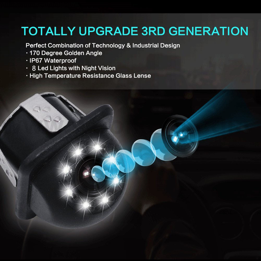 Backup Camera with 8 LEDs Night Vision Car Reverse Rear View CameraProduct Description: 1.Super easy installation. 2.Durable glass lens surrounded by 8 LED Lights 3.HD color CCD 4.NTSC/PAL TV system 5.Night vision 6.150 Degrees Vision 7.With Guideline 8.Shockproof and waterproof(IP67)design 9. Resolution: 420 TV lines 10. Power supply:DC 12V Crystal clear images in all weather conditions Easy Installation: · Mount the camera to your car's license plate area, back window, or any other suitable place · Adjust the lens of the camera to its best position. · Connect power wire (red and black) to your vehicle DC 12V power system. · Connect the video output (yellow wire) of the camera to the display in your vehicle. Package Included: 1 x Car Rear View Camera,1 x Video Cable,1 x Power Cable. 【Series】:Universal Car Camera