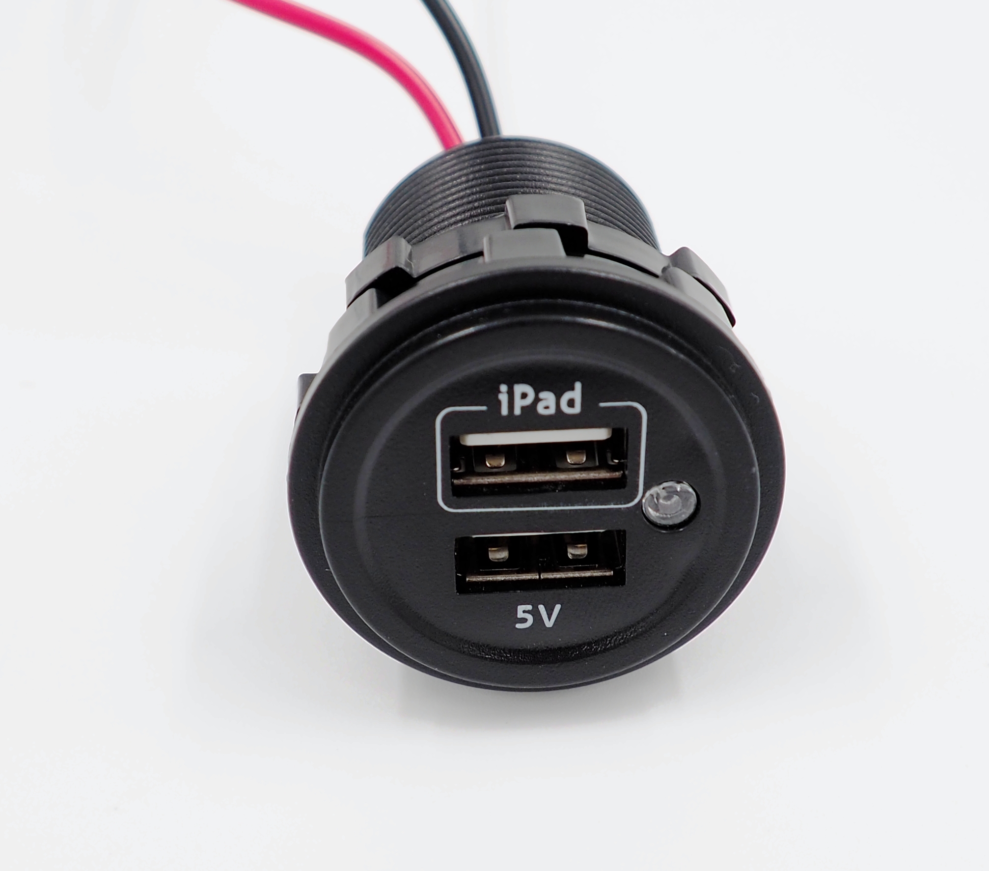 USB ChargerWorking voltage: 9.0-27.0V DCVoltage out: 5V DCAmperage out: 3.1A maxiPad charged with top USB