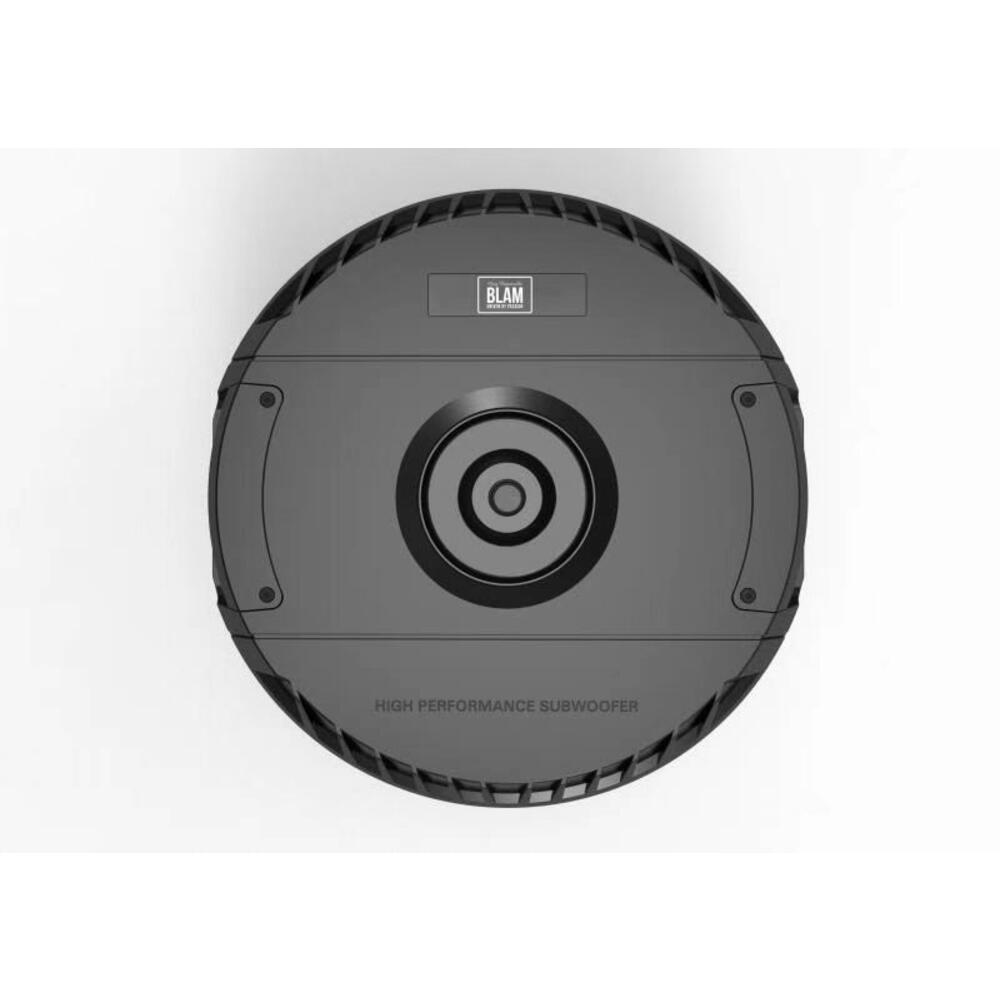 Die cast aluminium enclosure with 27 cm (11”) spare tire active subwoofer with integrated 300 W amplifier