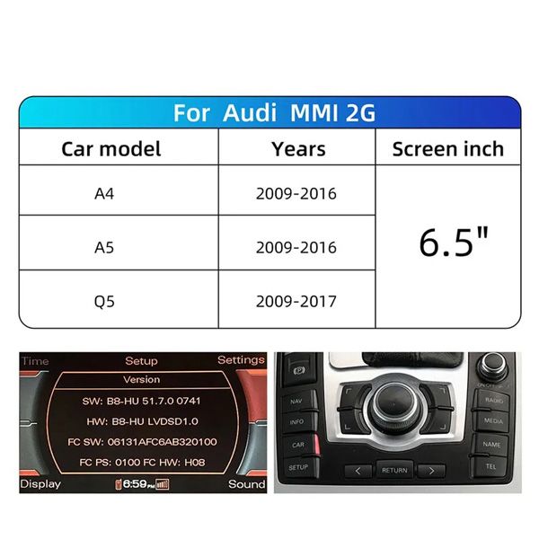 3rd generation Interface for wireless Apple Car Play, Android Auto, Screen Mirrorink, Bluetooth, USB Player & Camera for 2009-2017 Audi A4/A5/Q5 (6.5” screen)
