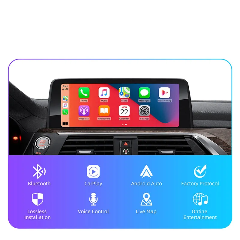 3rd generation Interface για ασύρματο Apple Car Play, Android Auto, Screen Mirrorink, Bluetooth, USB Player & Κάμερα για σύστημα EVO – MGU συμβατό με οθόνες 6,5 – 8,8 – 10,2 ιντσών για αυτοκίνητα BMW & MINI, διατηρώντας όλες τις εργοστασιακές ενδείξεις του ηχοσυστήματος στην οθόνη του αυτοκινήτου με πλήρη ενσωμάτωση των εργοστασιακών χειριστήριων του αυτοκινήτου.