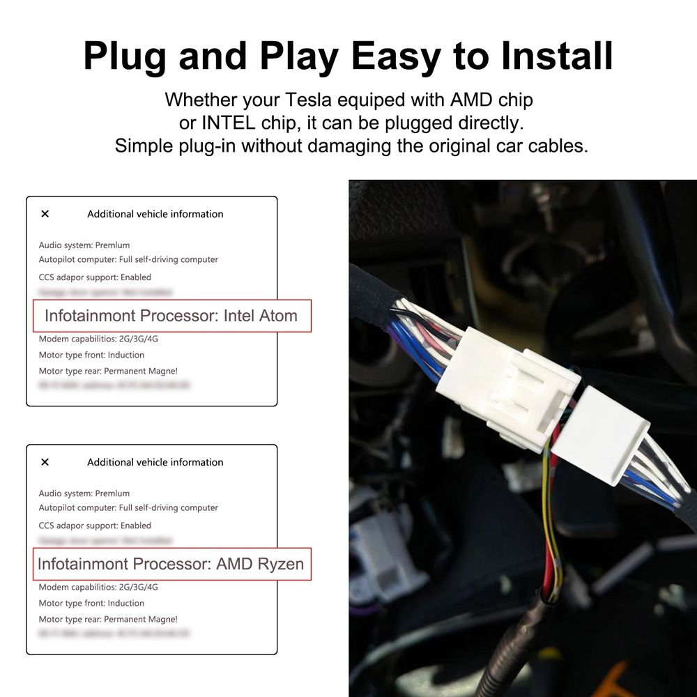 - Plug and play, Easy to install. One power harness suitable for both AMD and INTEL chip. No drilling required and will not damage your car during installation.