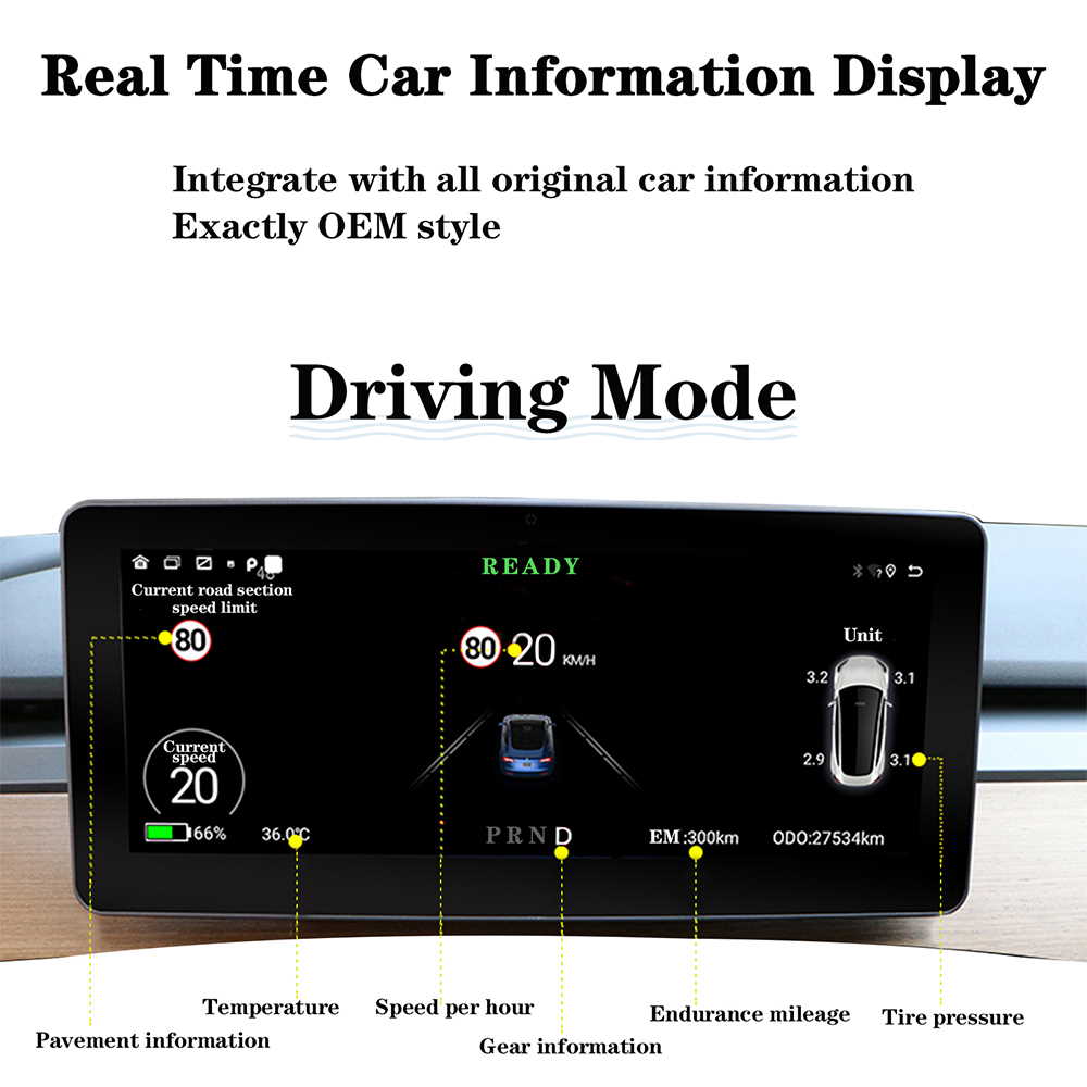 DASHBOARD INSTRUMENT PANEL for TESLA 3 & Y – ANDROID – CPU : CORTEX MT2712 ( 2xARM CORTEX A72 – 1.6Ghz + 4xARM A35 – 1.1Ghz ) – RAM : 2GB – NAND FLASH : 32GB