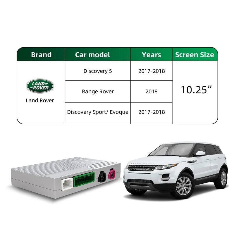 Συμβατό με Land Rover και JaguarΣυμβατό με μοντέλα Land Rover που διαθέτουν μεσαία οθόνη Harman – Style 8 ιντσών, ενώ δεν υποστηρίζει δεξιά οθόνη Harman – Style 10,25 ιντσών, για μια ομαλή εμπειρία οδήγησης Compatible With Land Rover and JaguarCompatible with Land Rover Models Featuring Middle 8 – inch Harman – Style Time Display, While Not Supporting Right – Side Time Display or Middle 10.25 – inch Harman – Style Screens, for a Smooth Carplay Experience |