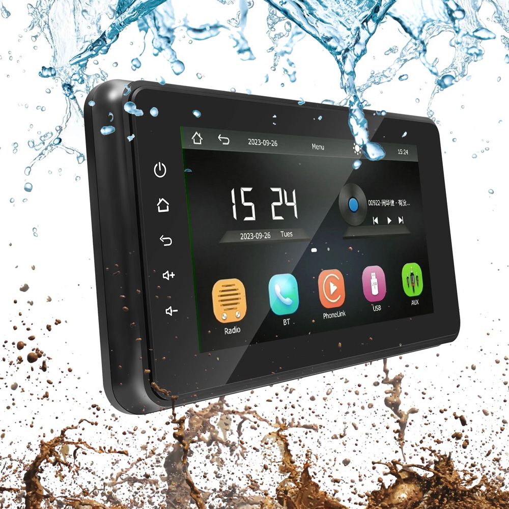 8Inch IPX6 Waterproof Marine Multimedia, FM Radio, Wireless CarPlay & Android Auto, USB & Bluetooth Player for Boats, ATVs, Jet-skies, Golf-carts etc