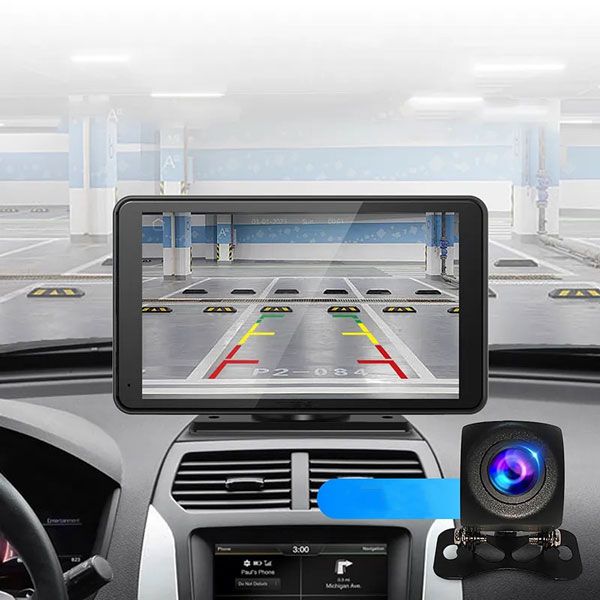 Portable Multimedia 7″ Screen with Wireless Apple CarPlay & Android Auto, Dual Cam DVR with front & rear camera.