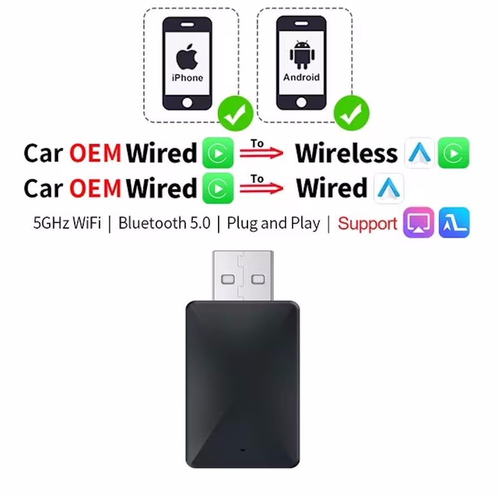 Αντάπτορας μετατροπής του ενσύρματου εργοστασιακού Apple CarPlay & Android auto σε ασύρματο.
