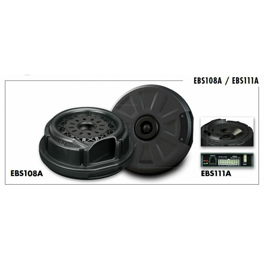 Το EBS111A διαθέτει περίβλημα από χυτό αλουμίνιο, με διάμετρο 36 cm και ύψος 14,5 cm, ταιριάζει σε τυπικές ζάντες με διάμετρο από 15 ίντσες και πάνω. Το ενεργό subwoofer μπορεί επομένως να εγκατασταθεί στο ίδιο το εφεδρικό ελαστικό ή στο χώρο της ρεζέρβας. Το περίβλημα EBS111A διαθέτει μια κεντρική εσοχή για τον πείρο στήριξης του οχήματος ή την παρεχόμενη ράβδο με σπείρωμα. Αυτή εισάγεται απλώς μέσω του woofer/μαγνήτη. Ο εφεδρικός τροχός και το κουτί subwoofer μπορούν έτσι να ασφαλιστούν με μόνο έναν πείρο.