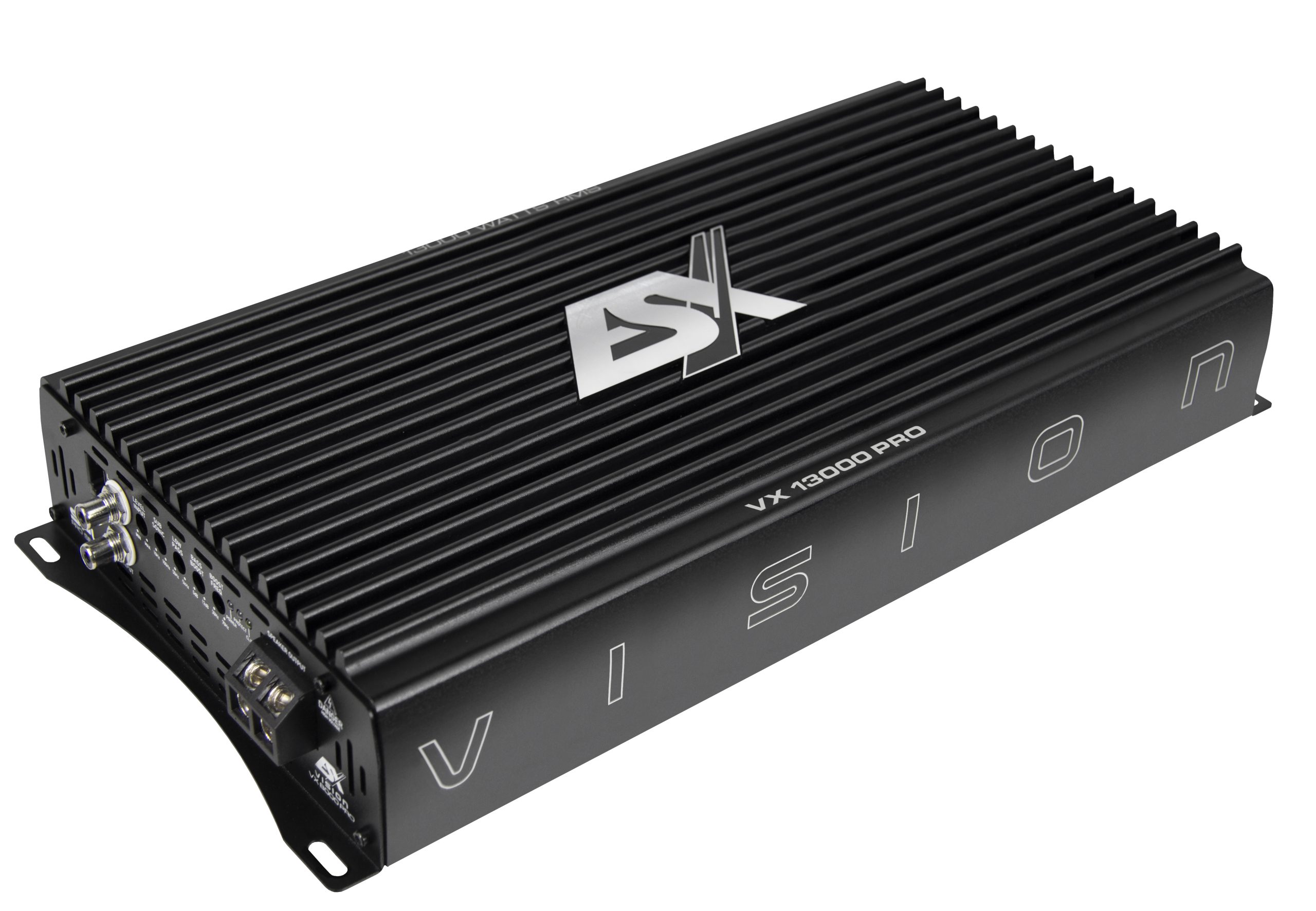 Mono Ultra Class D Digital Amplifier With the VISION VX PRO models, ESX opens a whole new chapter, which is first about power and even more power. The classically styled models, of which there are five mono-bolides, offer incredibly high performance from 2200 to 13000 watts RMS. If you take the small VX2000PRO in your hand and take a look at the data sheet, you can hardly believe it: With a footprint of around 20 x 19 cm and an output of up to 2200 watts RMS at 1 Ω Ω, it brings even experienced Car Audio expert to marvel at. Thanks to the special ESX circuit technology, these results are no dream! This means that even the most powerful subwoofers can be adequately powered. While commercially available mono blocks only have one cinch input, the VX PRO mono amps offer two of them. If you have an audio output device that outputs high power via cinch (e.g. a DSP or high-low converter), the “HIGH INPUT” is used for this. The “LOW INPUT” is used for control devices with a rather low output power (e.g. cheaper car radios). Due to the different inputs, leveling the power amp is much easier and better. Features Advanced Class D technology with very high efficiency Classically styled aluminum heatsink with optimal thermal properties Screw-type RCA jacks, Massive power and speaker connections Clipping LED, 3-way Protection Circuit Specifications Mono Ultra Class D Digital Amplifier 1 x 3000/6500/13000 Watts RMS @ 4/2/1 Ω Subsonic 10 – 100 Hz LPF 50 – 5000 Hz Bass Boost 0 – 12 dB @ 30 – 70 Hz RCA Low Level Input mono 0,4 – 3,6 V RCA High Level Input mono 1,0 – 9,0 V Dimensions 191 x 66 x 452 mm Efficiency up to 86% Downloads Owner’s Manual