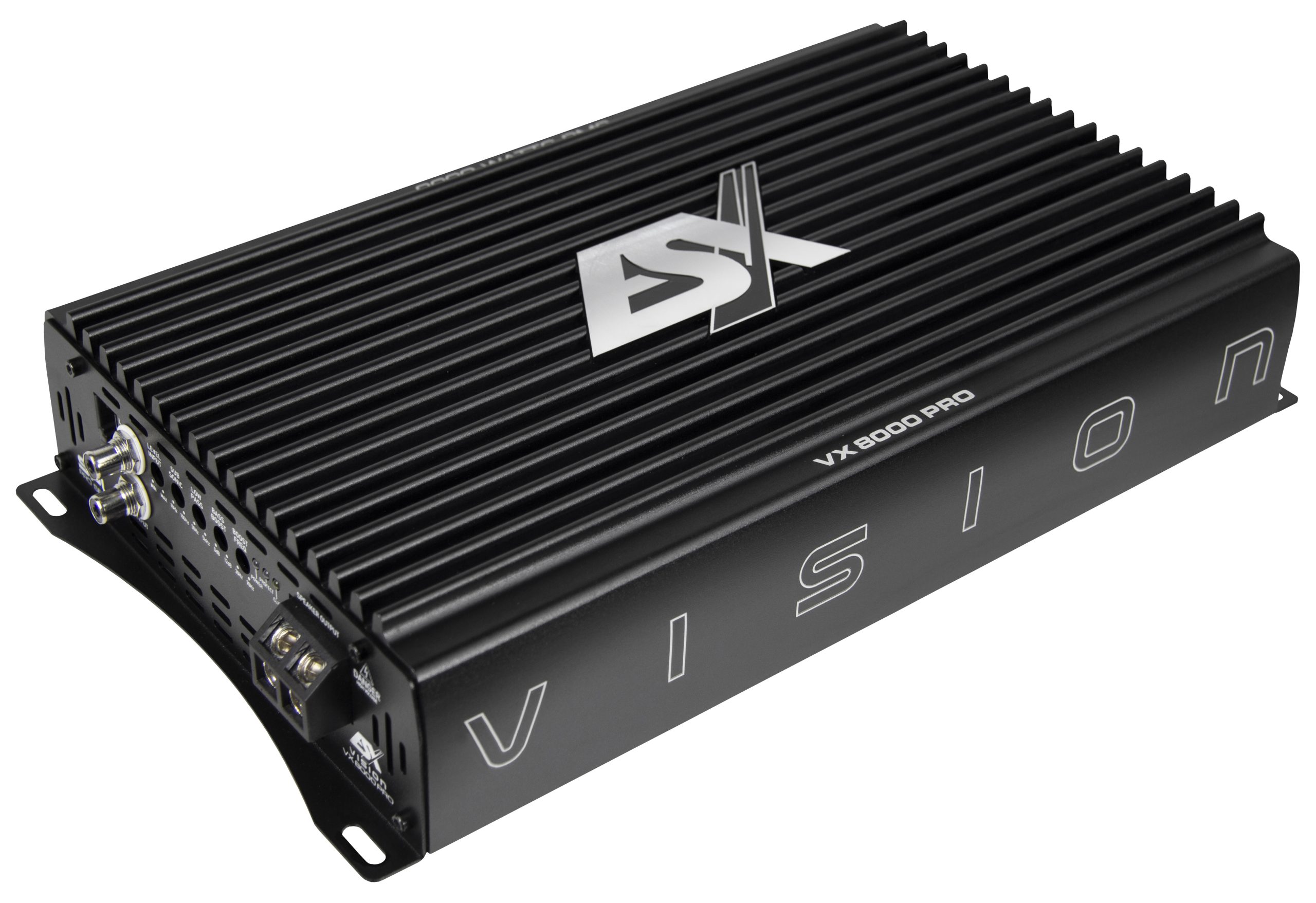 Mono Ultra Class D Digital Amplifier With the VISION VX PRO models, ESX opens a whole new chapter, which is first about power and even more power. The classically styled models, of which there are five mono-bolides, offer incredibly high performance from 2200 to 13000 watts RMS. If you take the small VX2000PRO in your hand and take a look at the data sheet, you can hardly believe it: With a footprint of around 20 x 19 cm and an output of up to 2200 watts RMS at 1 Ω Ω, it brings even experienced Car Audio expert to marvel at. Thanks to the special ESX circuit technology, these results are no dream! This means that even the most powerful subwoofers can be adequately powered. While commercially available mono blocks only have one cinch input, the VX PRO mono amps offer two of them. If you have an audio output device that outputs high power via cinch (e.g. a DSP or high-low converter), the “HIGH INPUT” is used for this. The “LOW INPUT” is used for control devices with a rather low output power (e.g. cheaper car radios). Due to the different inputs, leveling the power amp is much easier and better. Features Advanced Class D technology with very high efficiency Classically styled aluminum heatsink with optimal thermal properties Screw-type RCA jacks, Massive power and speaker connections Clipping LED, 3-way Protection Circuit Specifications Mono Ultra Class D Digital Amplifier 1 x 2500/4800/8000 Watts RMS @ 4/2/1 Ω Subsonic 10 – 100 Hz LPF 50 – 5000 Hz Bass Boost 0 – 12 dB @ 30 – 70 Hz RCA Low Level Input mono 0,4 – 3,6 V RCA High Level Input mono 1,0 – 9,0 V Dimensions 191 x 66 x 340 mm Efficiency up to 93% Downloads Owner’s Manual Test Review