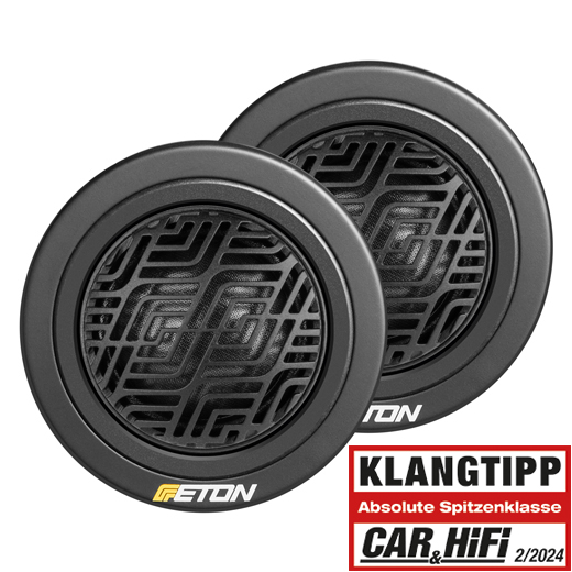 Tweeter υψηλής ποιότητας με μεγάλο πηνίο φωνής 28 mm στις έξυπνες διαστάσεις εγκατάστασης ενός tweeter 25 mm: Τα τουίτερ με διπλή επένδυση στο χέρι με βελτιωμένη γεωμετρία θόλου εντυπωσιάζουν με βελτιστοποιημένες πανκατευθυντικές ιδιότητες, μεταξένια, ακριβή πρίμα και πλήρη, ζεστή αναπαραγωγή φωνής – λεπτομέρειες που εμπνέουν, λεπτομέρειες για το τέλειο στάδιο στο όχημα. Η πρόσφατα αναπτυγμένη μάσκα καλύμματος σχεδίου ETON από πλαστικό υψηλής ποιότητας έχει βελτιστοποιηθεί για συντονισμό και επομένως επιτρέπει τη μέγιστη μετάδοση. Τα tweeter ήταν εξοπλισμένα με συμπαγή τεχνολογία σύζευξης όγκου και αντιστάθμισης ανάκλασης στη μονάδα νεοδυμίου. GRAPHIT 28 – είναι κορυφαίας κατηγορίας tweeter, κατασκευασμένα στη Γερμανία. Η εγκατάσταση και τα επιφανειακά περιβλήματα με λειτουργίες περιστροφής περιλαμβάνονται