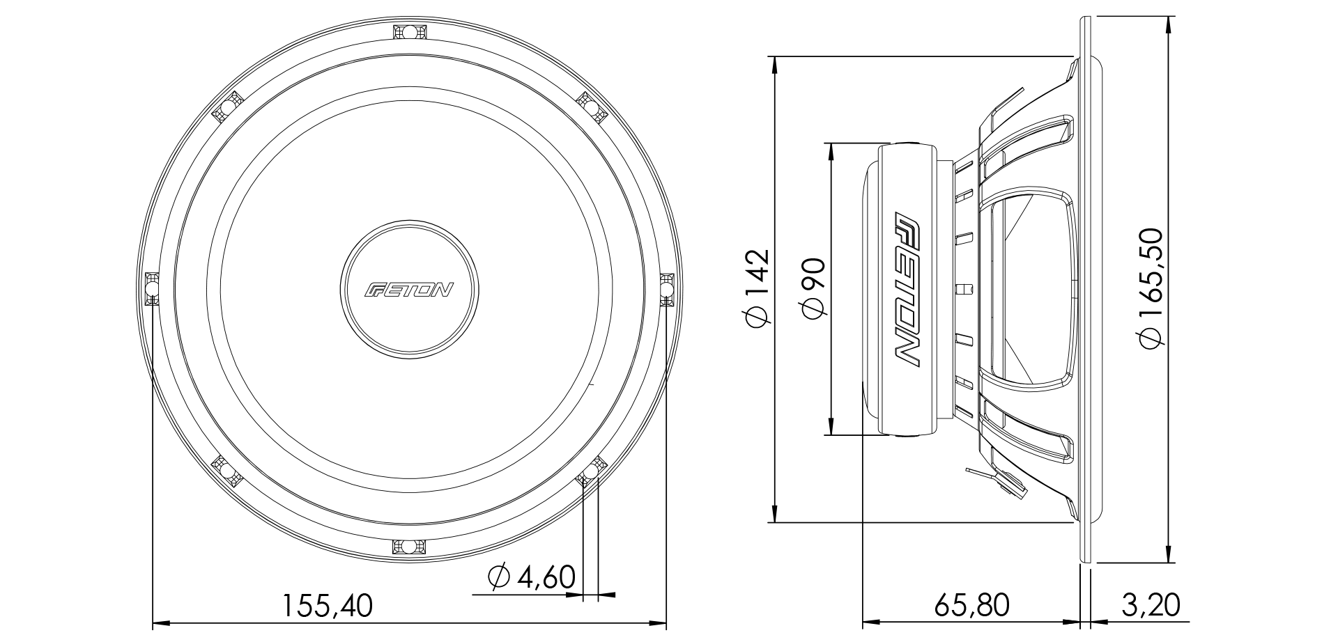 Diension Woofer : 10″ (250mm)