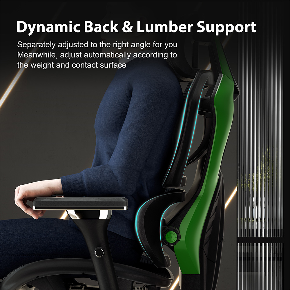 - Η ευέλικτη, αυτοπροσαρμοζόμενη σχεδίαση διπλής πλάτης παρέχει πλήρη υποστήριξη στον αυχένα, την πλάτη και την οσφυϊκή περιοχή