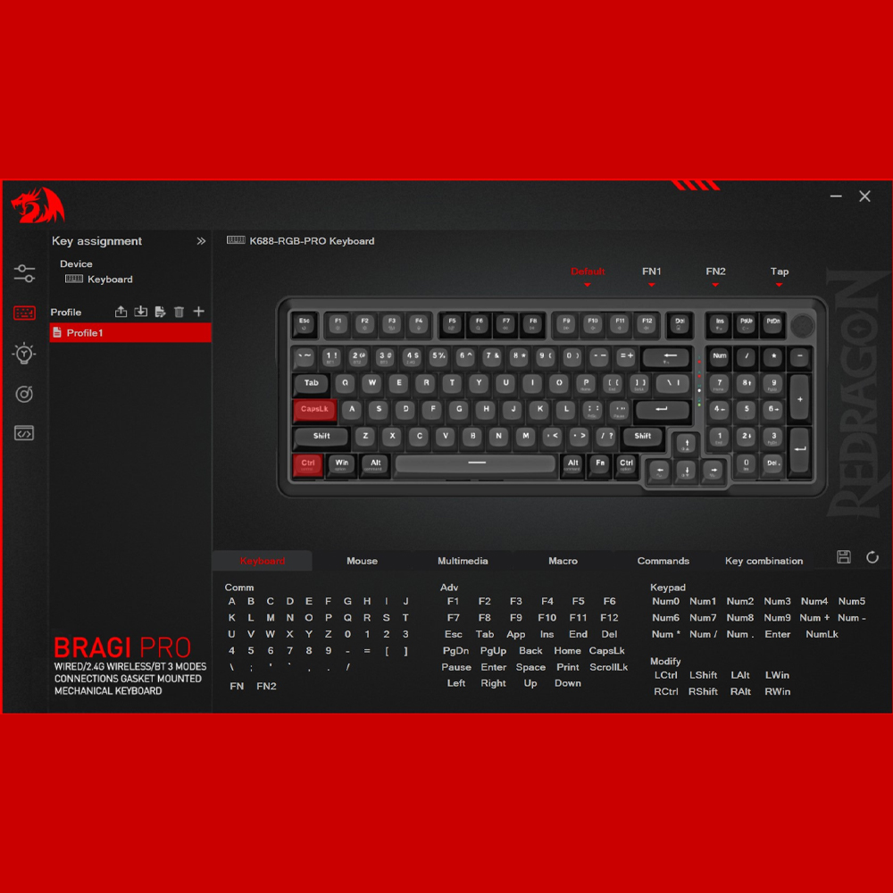 Redragon BRAGI PRO K688 RGB PRO 75% 3-mode Gasket Gaming Πληκτρολόγιο με Hot-Swappable διακόπτες.