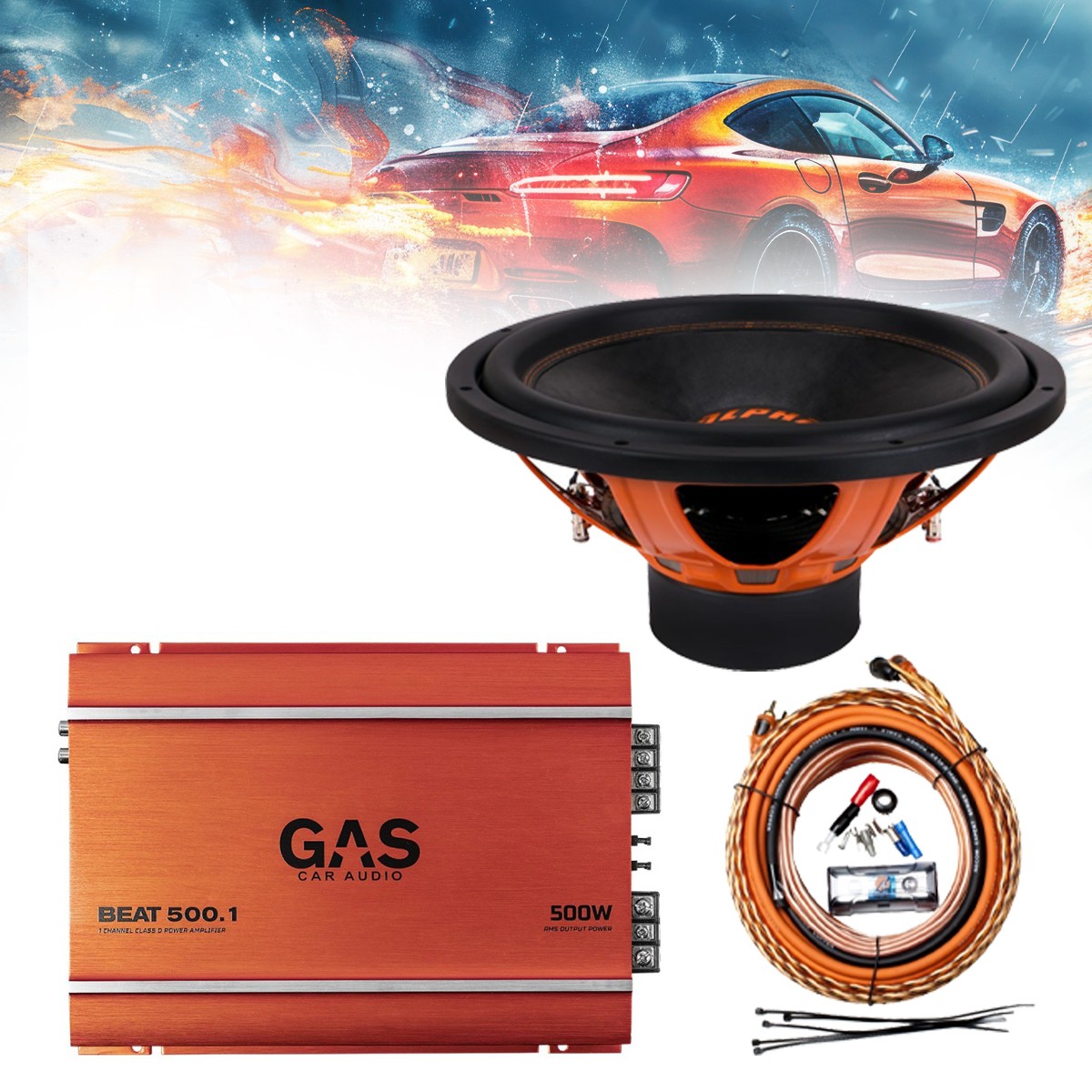GAS-1CHPACK9 Πλήρες ηχοσύστημα μπάσου 15” Gas Audio και δώρο kit καλωδίωσης