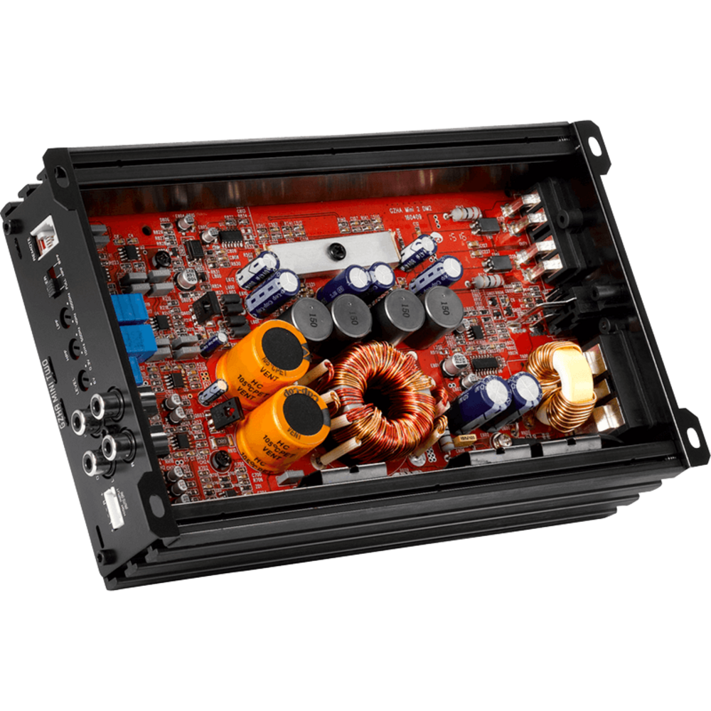 2-channel amplifier with high efficient class D circuit, integrated activ crossover and compact dimensions