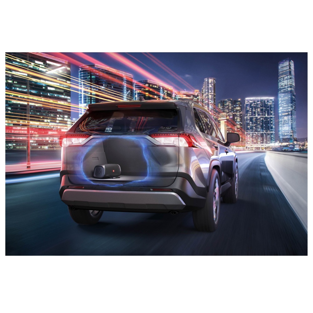 In-vehicle powered subwoofer & full-range portable Bluetooth® speaker.