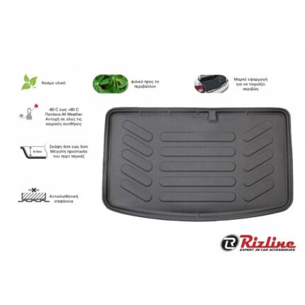 Πατάκι Πορτ-Παγκάζ 3D Σκαφάκι Από Λάστιχο TPE Για Hyundai i20 2009-2014 Μαύρο Rizline