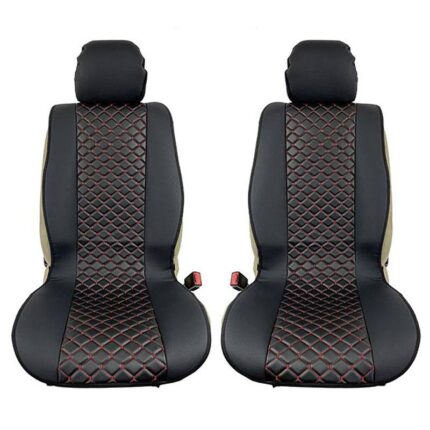 Πλατοκαθίσματα Μπροστινά Δερματίνη Royal Μαύρο Με Κόκκινη Ραφή 2 Τεμάχια