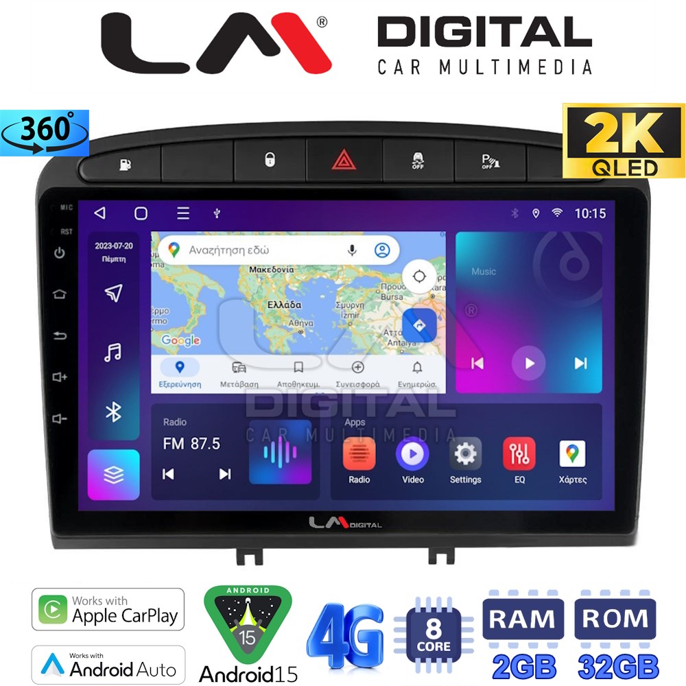 LM Digital – LM ZB8083 GPS Οθόνη OEM Multimedia Αυτοκινήτου για PG 308 2007>2012 (CarPlay/AndroidAuto/BT/GPS/WIFI/GPRS)