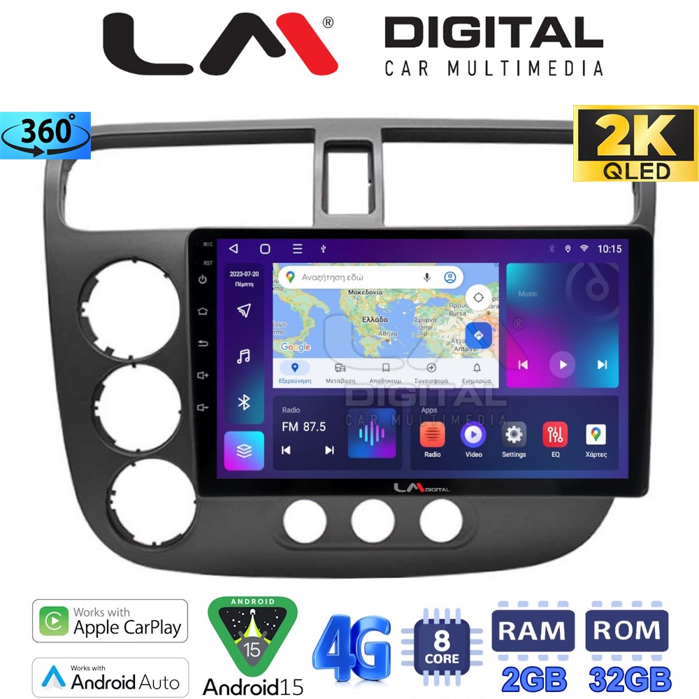 LM Digital – LM ZB8373 GPS Οθόνη OEM Multimedia Αυτοκινήτου για HONDA CIVIC 4πορτο 2001 > 2006 (CarPlay/AndroidAuto/BT/GPS/WIFI/GPRS)