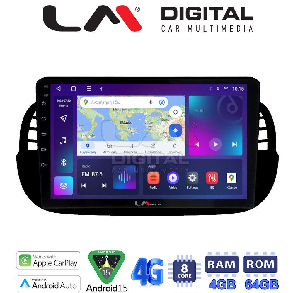 LM Digital – LM ZC8315B GPS Οθόνη OEM Multimedia Αυτοκινήτου για Fiat 500 2007 > 2016 (CarPlay/AndroidAuto/BT/GPS/WIFI/GPRS)