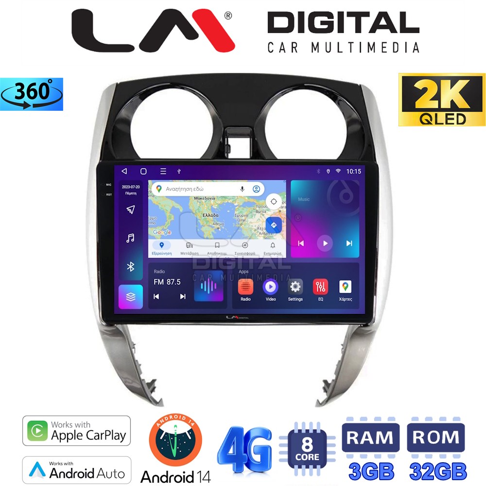 LM Digital – LM ZD8790 GPS Οθόνη OEM Multimedia Αυτοκινήτου για Nissan Note 2013 > 2020 (CarPlay/AndroidAuto/BT/GPS/WIFI/GPRS)