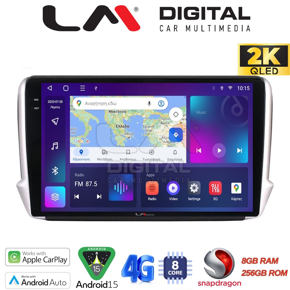 LM Digital – LM ZQ8374 GPS Οθόνη OEM Multimedia Αυτοκινήτου για PEUGEOT 208-2008 2012> (CarPlay/AndroidAuto/BT/GPS/WIFI/GPRS)