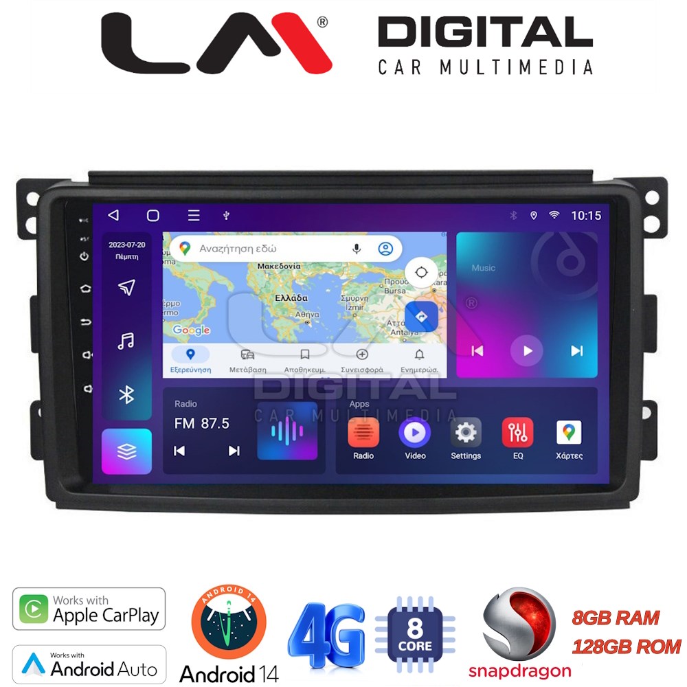 LM Digital – LM ZT8087 GPS Οθόνη OEM Multimedia Αυτοκινήτου για SMART 2007>2010 (CarPlay/AndroidAuto/BT/GPS/WIFI/GPRS)