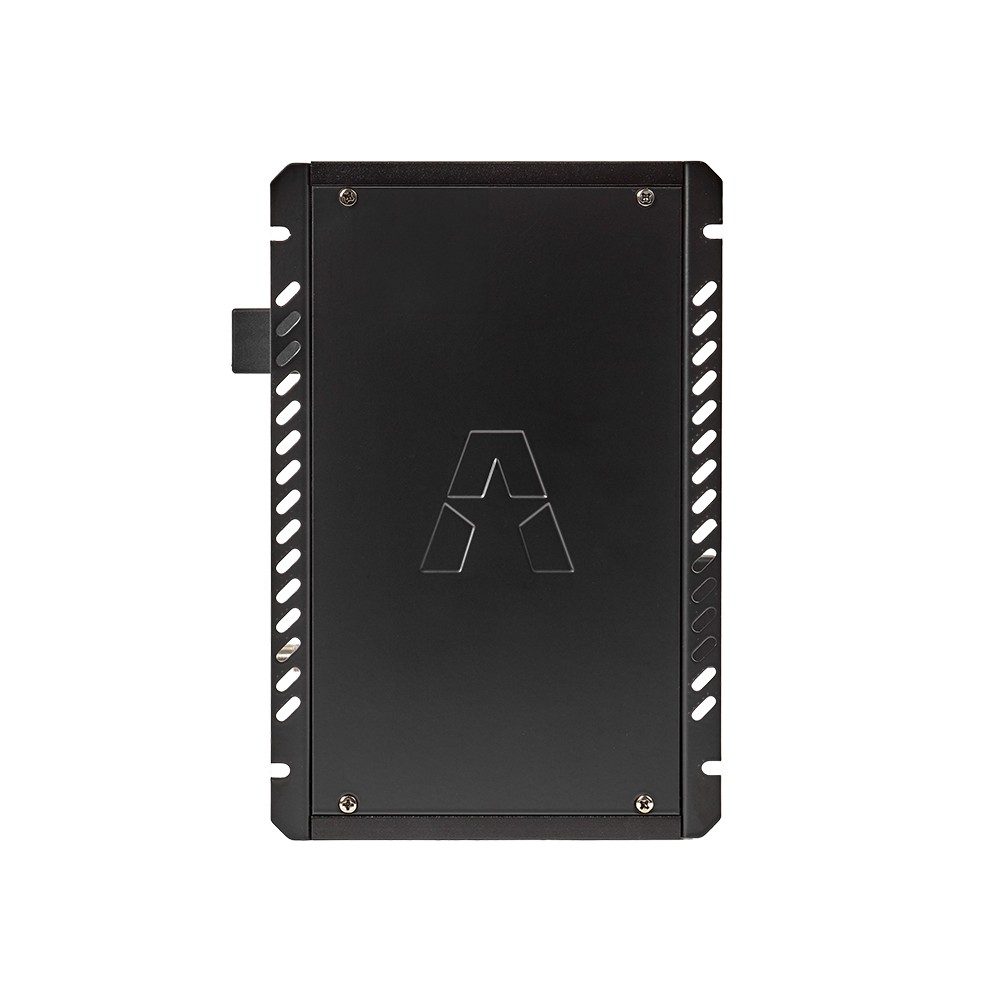 The unique heatsink, in extruded aluminum with a reinforced A-star backplate, features thermal properties developed to optimize and control the amplifier temperature. The GAS VCC (Vented Cross Cooling) system keeps cool air flowing constantly forward over the components, forcing out the hot air through the thermal openings in the opposite side of the chassis.
