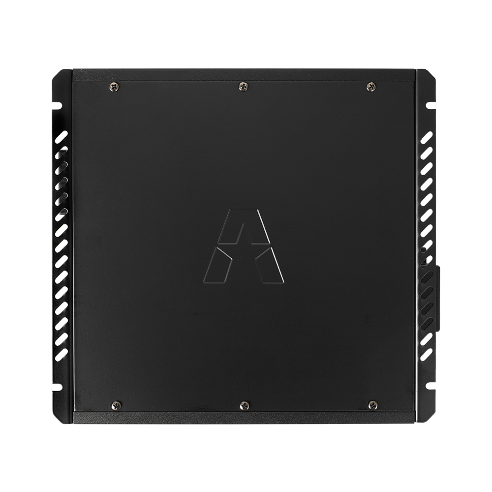The unique heatsink, in extruded aluminum with a reinforced A-star backplate, features thermal properties developed to optimize and control the amplifier temperature. The GAS VCC (Vented Cross Cooling) system keeps cool air flowing constantly forward over the components, forcing out the hot air through the thermal openings in the opposite side of the chassis.