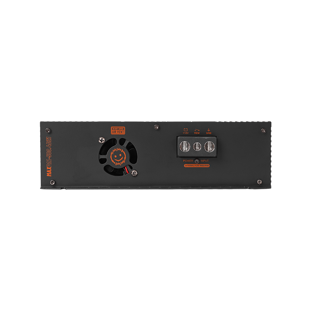Using accurate sized cables will improve the current flow. MAX PA1-500.4DZ1 have been equipped with plus-size 8AWG (10mm²) speaker cable outputs and actual sized 0AWG (50mm²) power and ground connectors, made to secure maximum performance.