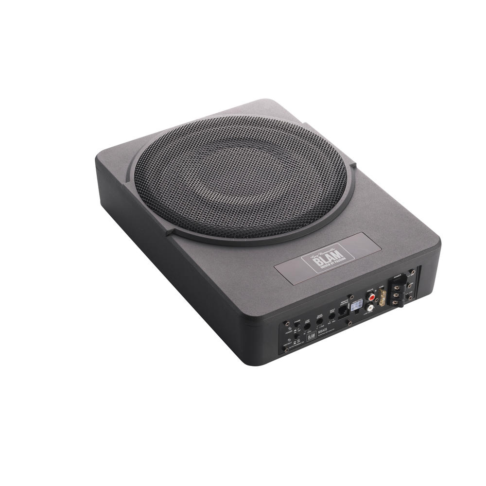 Die cast aluminium enclosure with 25cm subwoofer and integrated 250W amplifier: a complete solution for easily adding to bass OEM system. Complete solution for easily adding to bass OEM system.