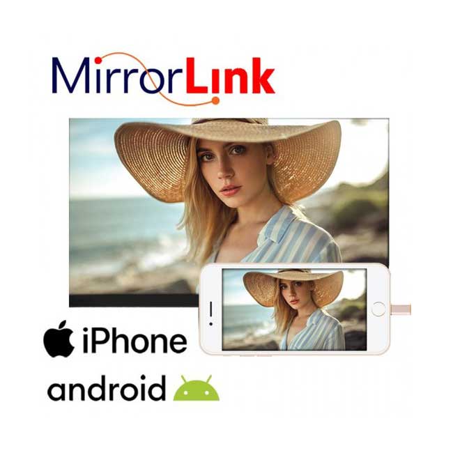 Λειτουργία Mirrorlink με Android και iPhone κινητά (η οθόνη δείχνει ακριβώς ότι παίζει και το κινητό)