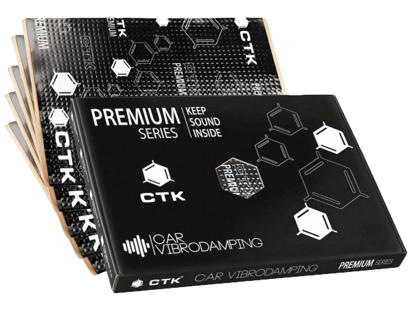 Τα πατάκια CTK Premium είναι από τα πιο αποτελεσματικά καθώς και τα ελαφρύτερα αντικραδασμικά υλικά της αγοράς. Έχουν σχεδιαστεί για να μεγιστοποιούν τη μείωση των κραδασμών, του θορύβου και του συντονισμού των ακουστικών στοιχείων του αμαξώματος και της ταπετσαρίας του αυτοκινήτου. Λειτουργούν πολύ καλά κατά τις τροποποιήσεις που στοχεύουν στη βελτίωση της ακουστικής του εσωτερικού του αυτοκινήτου σε περίπτωση εγκατάστασης και χρήσης εξοπλισμού ήχου αυτοκινήτου υψηλής ποιότητας, καθώς και στην επαγγελματική τοποθέτηση γενικής μείωσης θορύβου αυτοκινήτου. Τα δονητικά-ακουστικά υλικά CTK της σειράς Premium είναι κορυφαία προϊόντα που προορίζονται κυρίως για επαγγελματίες εγκαταστάτες εξοπλισμού ήχου αυτοκινήτου από γνωστές εταιρείες.