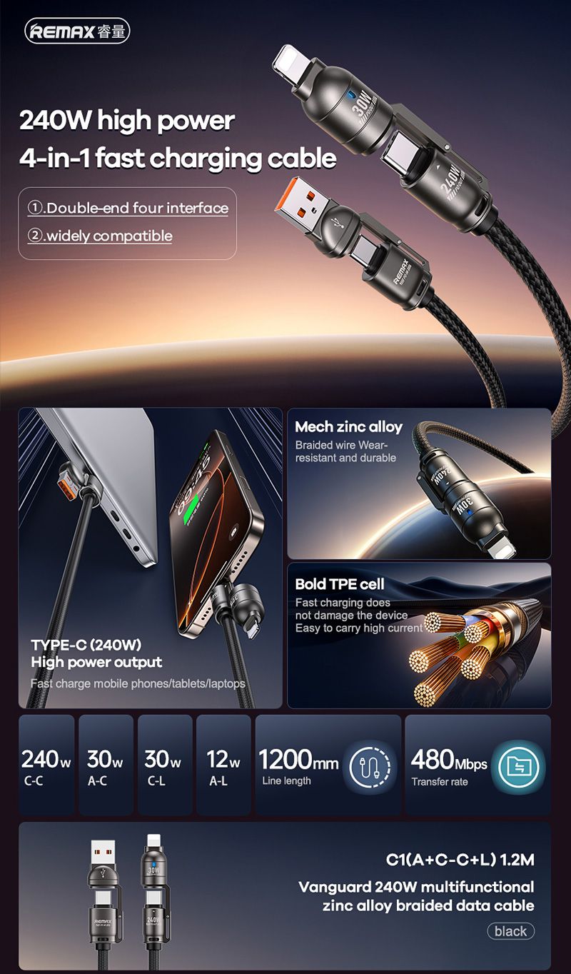 REMAX C1 240W (4 in 1 FAST CHARGING CABLE)