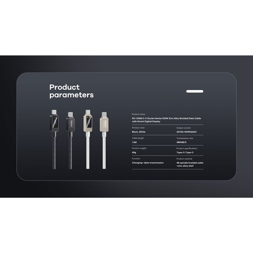 REMAX RC-C069 C-C Type-C to Type-C 100W Fast Charging Cable with Display