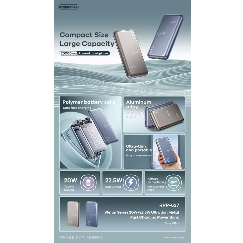 REMAX RPP-637 BL Powerbank Fast charging 20w+22.5w (20.000mA)