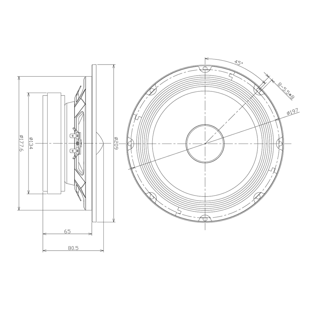 High efficiency midrange woofer • Diameter : 20cm (8“)