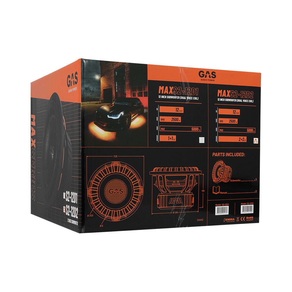 Subwoofer αυτοκινήτου 12" 5000 W Gas Audio Power MAX S2-12D2