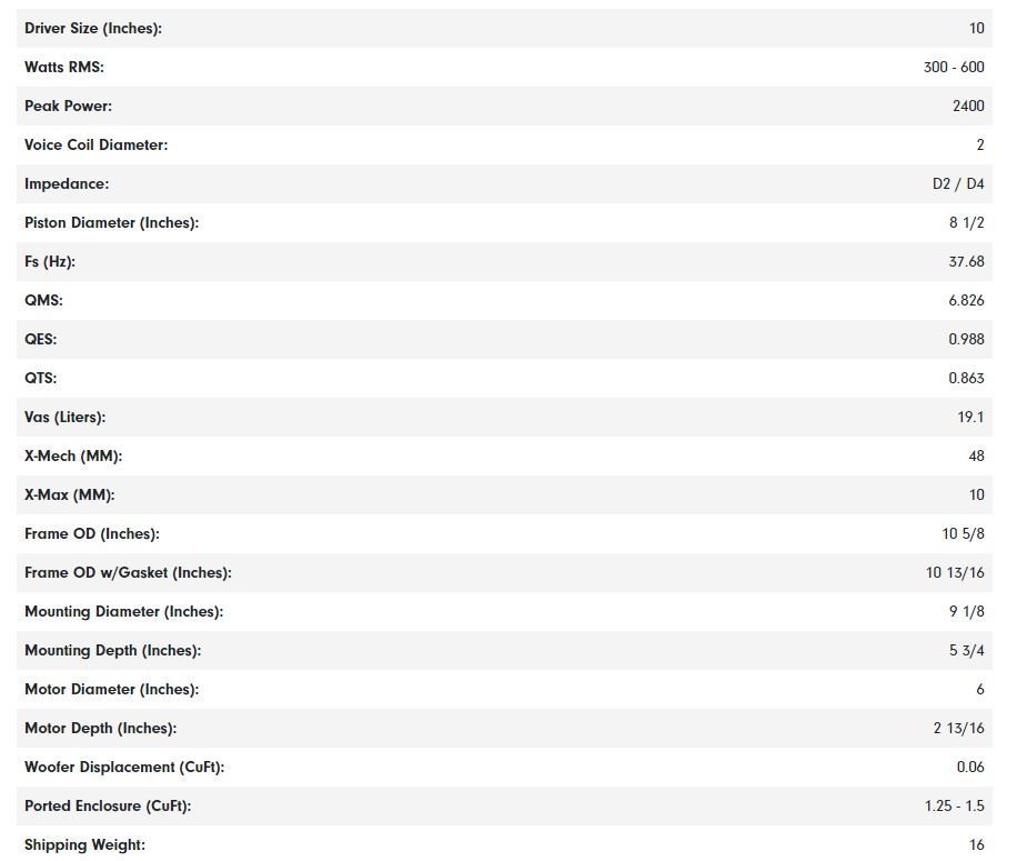 Voice coil dimension : 4.0inch