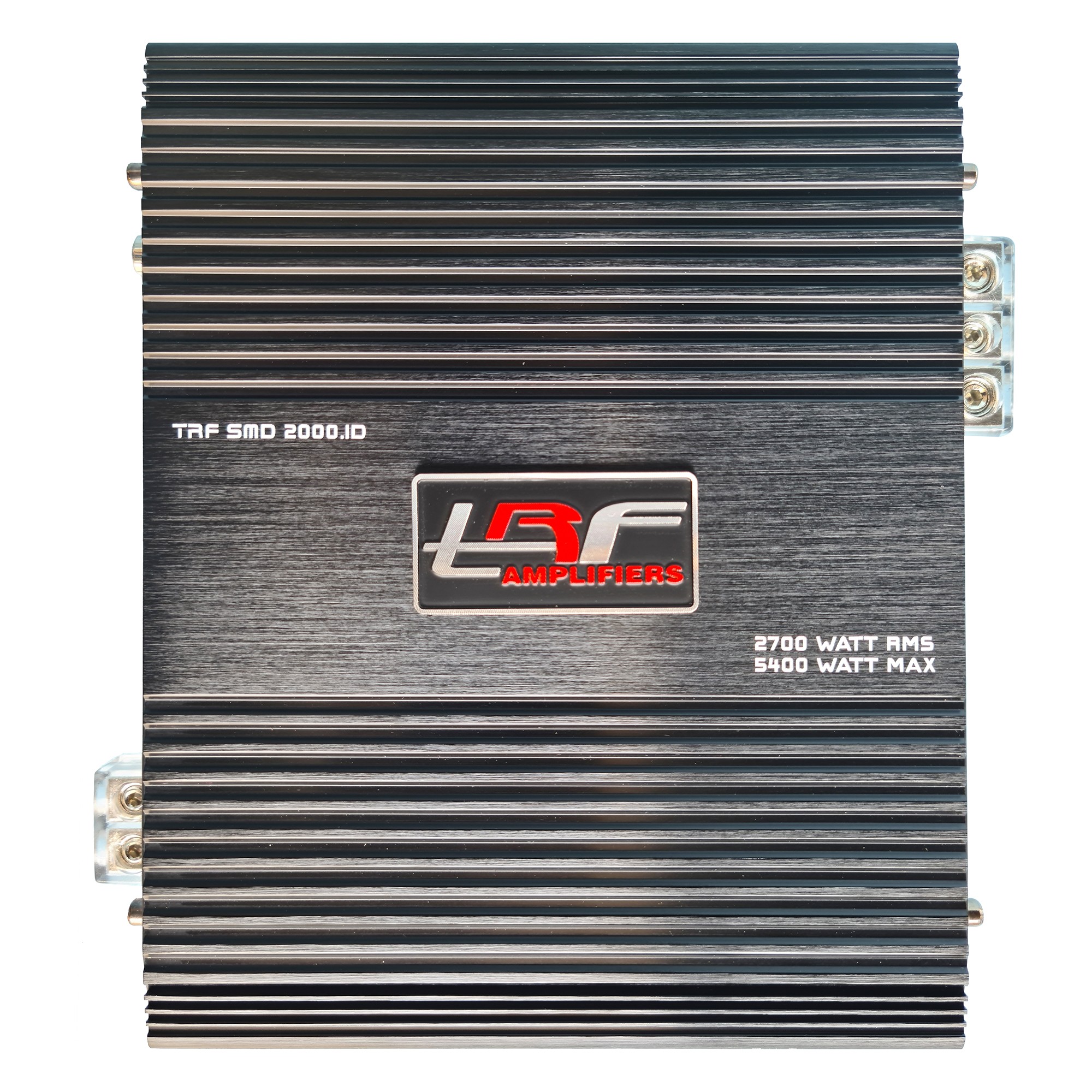 TRF SMD 2000.1DRMS 1X950 4ohmRMS 1X1500 2ohmRMS 1X2700 1ohmTEST VOLTAGE % THD:14.4V-10%THDRMS 1X700 4ohm RMS 1X1300 2ohmRMS 1X2250 1ohmTEST VOLTAGE & THD:12.6V-10%THDMAX 1X1900 4ohmMAX 1X3000 2ohmMAX 1X5400 1ohm TOTAL 5400WMAX TEST VOLTAGE & THD:14.4V-1%THDFreguncy response:10Hz-20KHzSignal to Noise : 100dB <Damping Factor : 800 <Working impedance : 1ohm monoInput Sensitivity : 0.2V to6VCrossover : 18db oct/ slopeBandpass Filter:hi Pass Filter : 15Hz to 1KHzlow Pass Filter : 80Hz to 20KHzBASS BOOST: 0 to 12 dbBAST BOOST FREQ: 35Hz to 70HzRemote controller CHECK:VOLTAGE/TEMP – PWR,PRT,CLIP .1X2 gauge power & speaker terminals2 oz copper printed circuit boardHeavy-duty heatsink3way protection :DC offset , Thermal , speaker shot .BURRBROWN OP AMP IC4 HAND-WOUND POWER TRANSFORMERS.Tested Voltage & THD : 14.4V & Less than 1% THDWorking voltage : 8.5V to16VFUSE RATING : 80AMPERHeight: 60mmWidth: 170mmLenght: 185mm