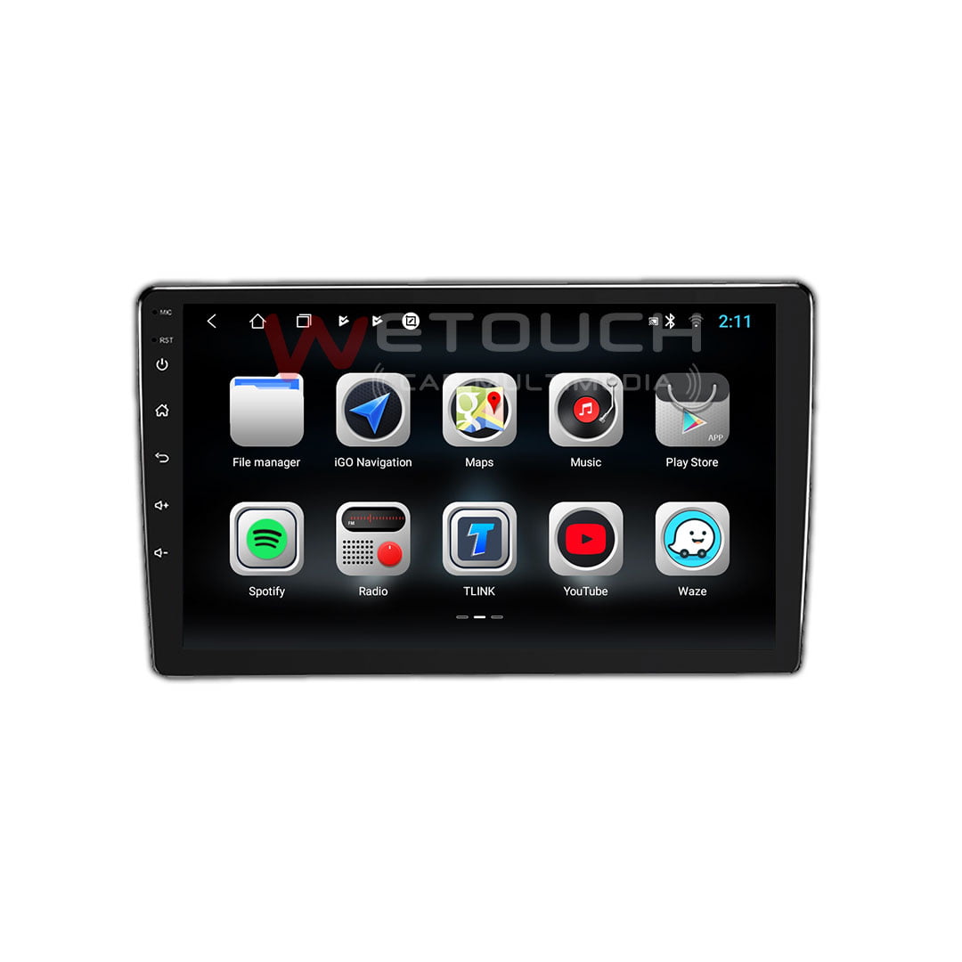 Η οθόνη Wetouch διαθέτει 2GB μνήμη RAM και εσωτερική μνήμη ROM 32GB, αυθεντικό λογισμικό τελευταίας γενιάς Android, λειτουργία αφής και κουμπιά για γρήγορη μετάβαση σε navigation, bluetooth κ.α.