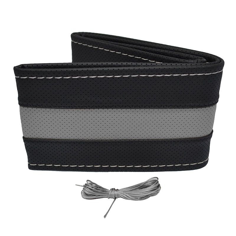 Κάλυμμα Τιμονιού Αυτοκινήτου Otom Stitching Δερματίνη Ραφτό Εξώγαζο Μαύρο – Γκρι Medium 37-39cm DK-305