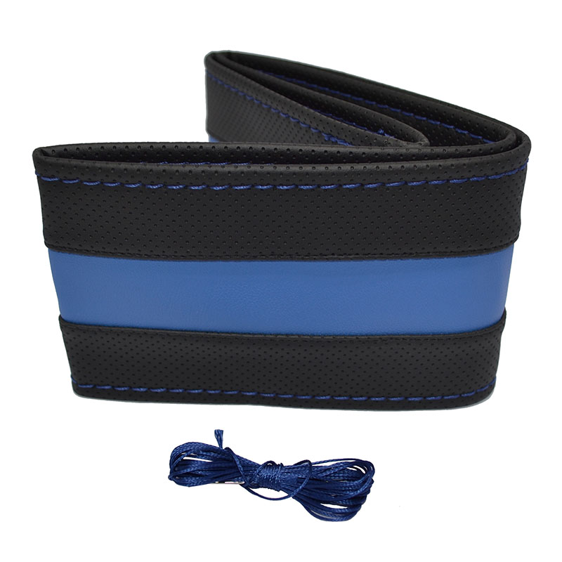 Κάλυμμα Τιμονιού Αυτοκινήτου Otom Stitching Δερματίνη Ραφτό Εξώγαζο Μαύρο – Μπλε Medium 37-39cm DK-302