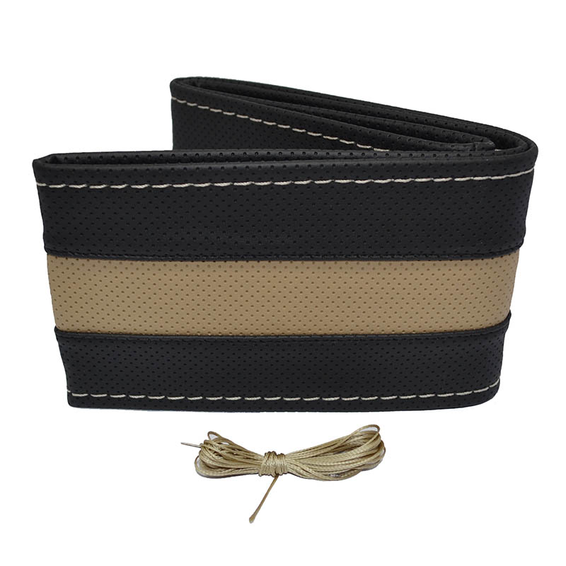 Κάλυμμα Τιμονιού Αυτοκινήτου Otom Stitching Δερματίνη Ραφτό Εξώγαζο Μαύρο – Μπεζ Medium 37-39cm DK-303